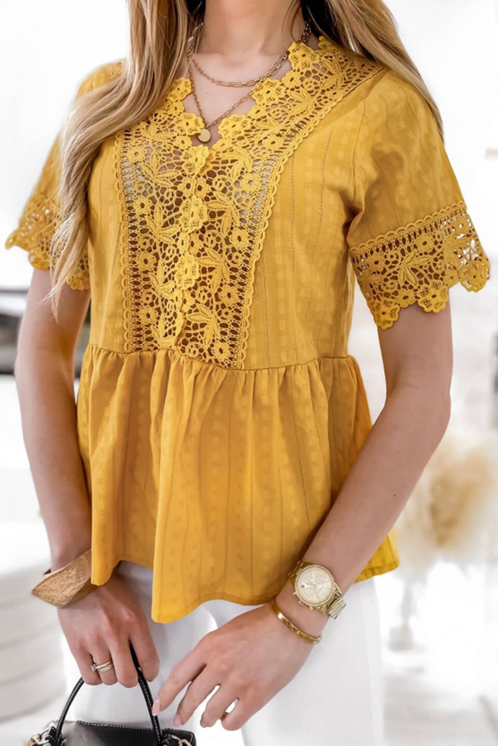 The shirt with the lace splicing is perfect to show the women’s elegant style