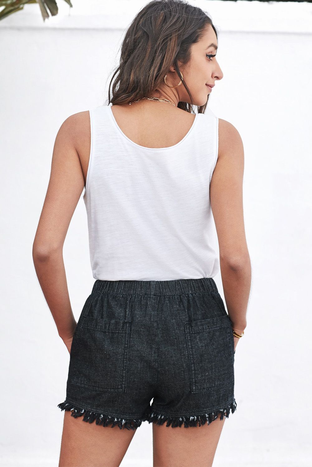 The lightweight pair that's Summer ready Crafted in a light wash denim like hue on a breathable denim base The relaxed fit wears with an elastic drawstring waistband, four pockets and a fringed hem Perfectly cool and effortless to match with any top We wholesale womens denim shorts onlile at affordable price to help our clients make achievements.