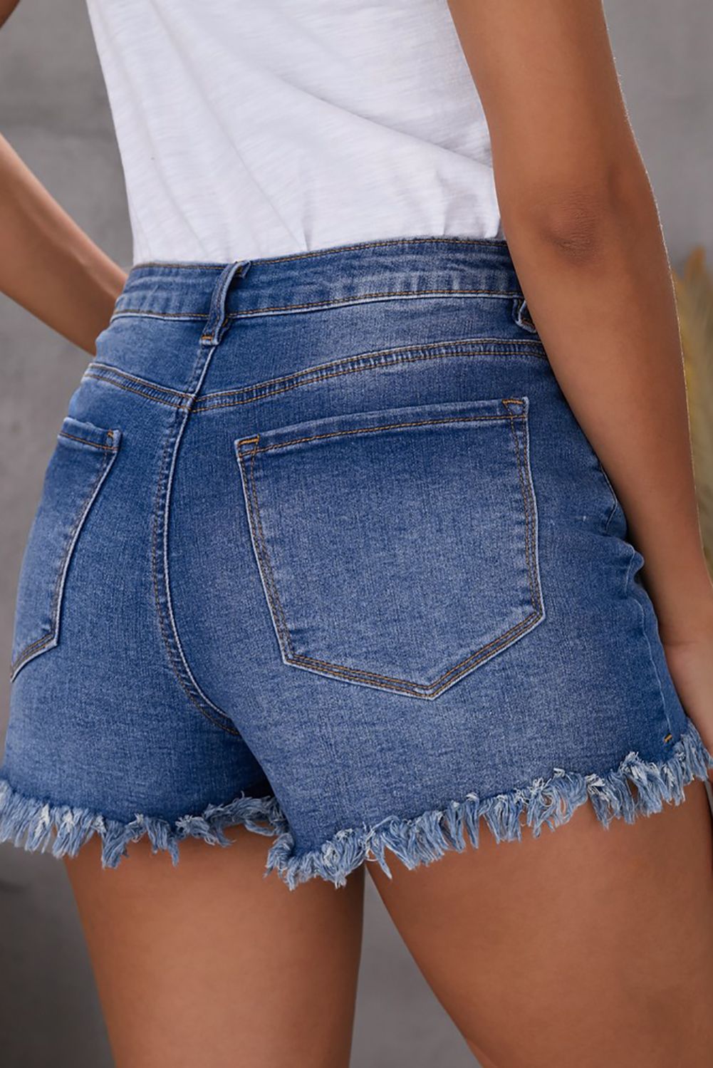 Leopard Pocket Low Rise Distresses Denim Shorts
